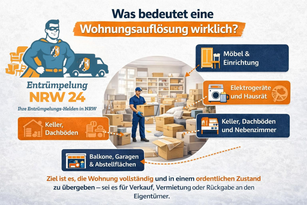 Eine Wohnungsauflösung ist mehr als nur das Entfernen alter Möbel. Sie bedeutet Organisation, Verantwortung, Diskretion und fachgerechte Entsorgung. Gerade in Nordrhein-Westfalen, wo Städte, Wohnstrukturen und Anforderungen stark variieren, ist Erfahrung entscheidend.